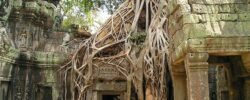 - Za začetek obiščemo tempelj Ta Prohm, znan po ogromnih drevesnih koreninah, ki objemajo starodavne kamnite strukture.